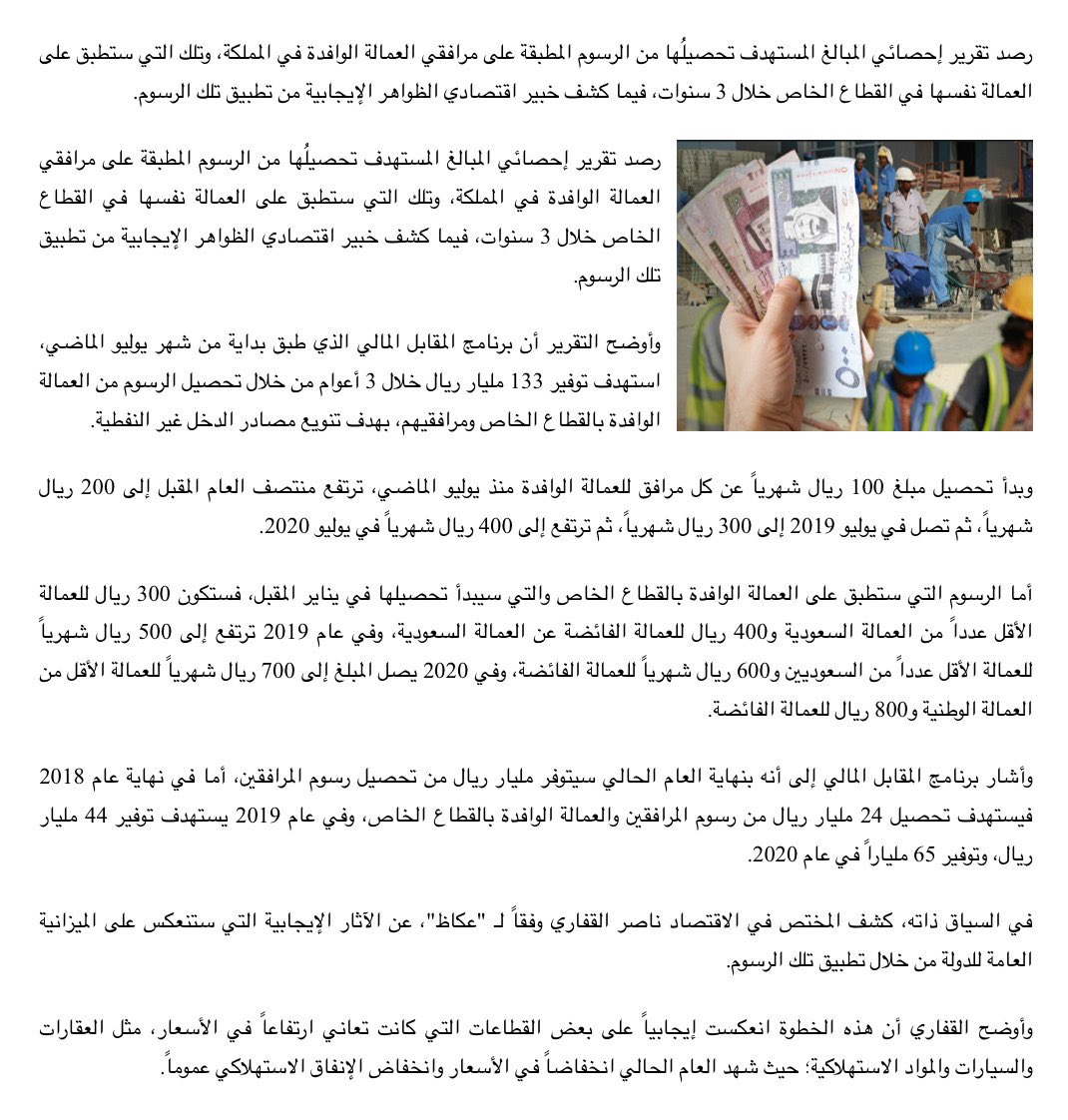 جريدة الرياض الرياض تكشف عن تفاصيل رسوم العمالة الوافدة ومرافقيهم