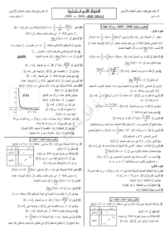 تمارين في الدوال اللوغاريتمية الثانية باك علوم تجريبية