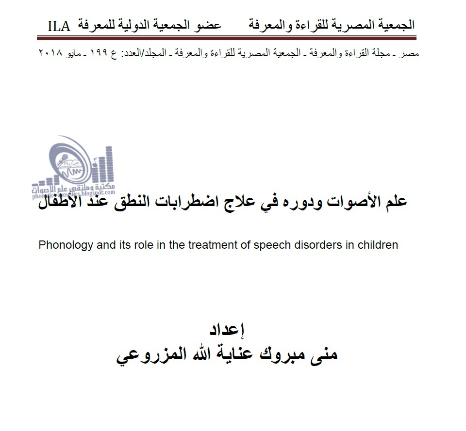 بحث علم الأصوات ودوره في علاج اضطرابات النطق عند الأطفال ـ منى المزروعي ـ بحث محكم مكتبة وملتقى علم الأصوات Phonetics Acoustics