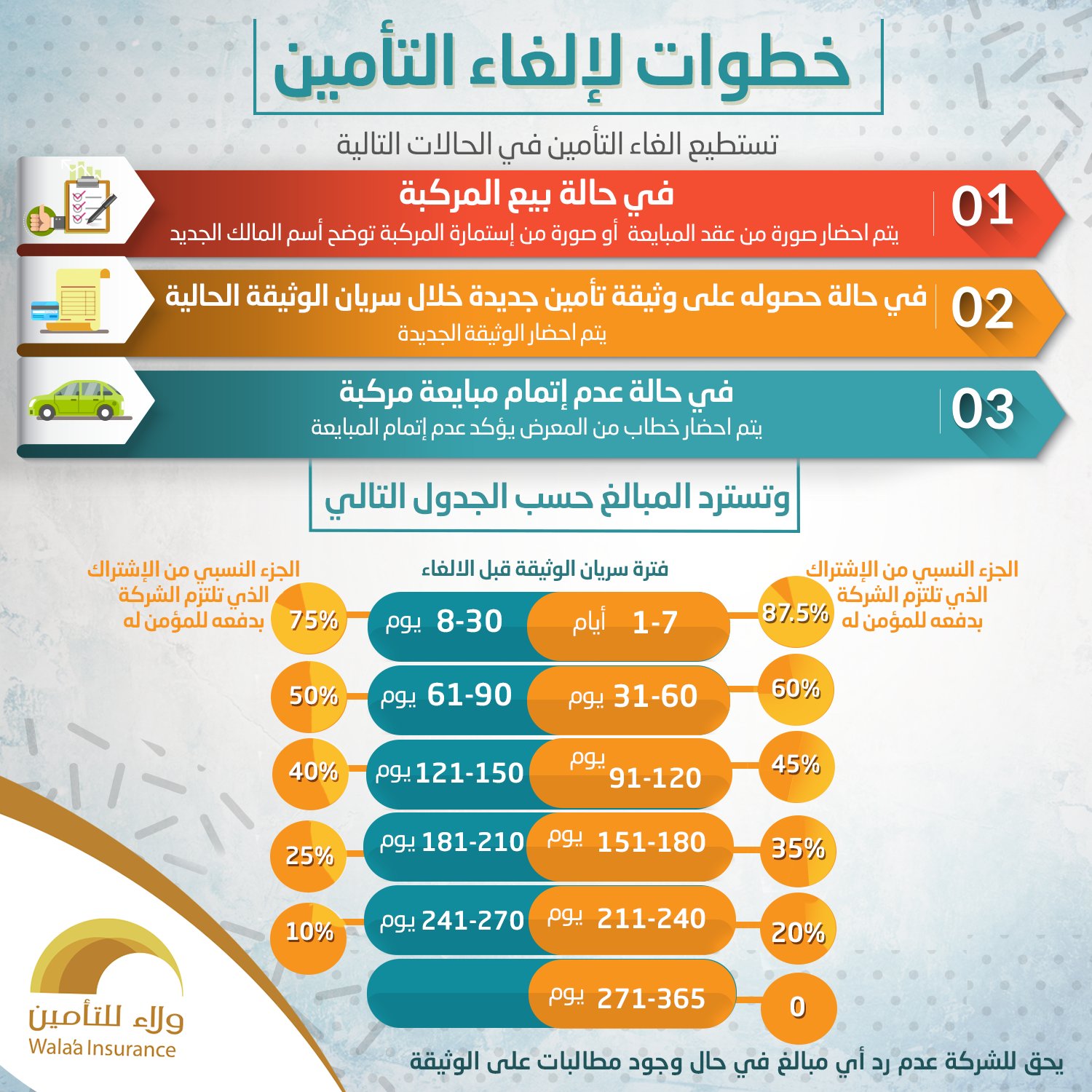 ولاء للتأمين Pe Twitter يحق لك في حال إلغاء التأمين استرداد المبلغ حسب الجدول التالي